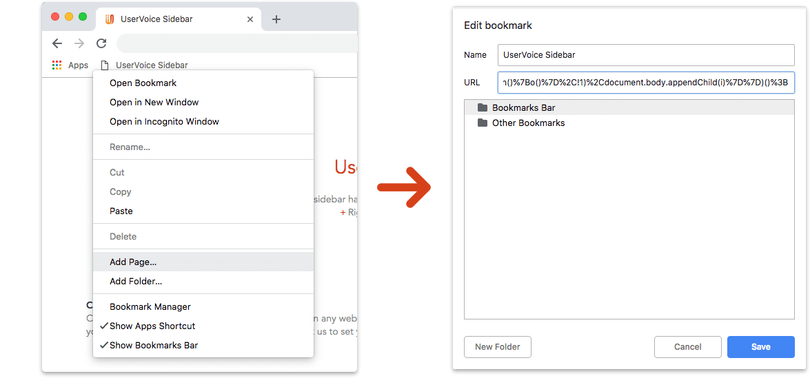 - Right-click the Bookmarks Bar and select “Add Page…”